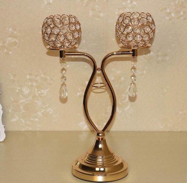 Compre Nuevo Producto Centros De Mesa Para Bodas Candelabro Con Dos Brazos Candelabro Dorado Decoraciones De Mesa Candelabros De Cristal Para