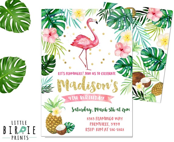 Invitación Del Cumpleaños De Flamingo Piña Cumpleaños Invitación Oro Invitación Flamingo Con Palmas Luau Invitación Piña Oro Cumpleaños