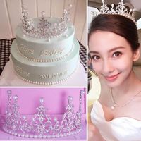 Centro De Mesa Decoraciones De La Boda Crown Pearl Cake Corona De La Boda Bridal Head Piezas Accesorios Happy Birthday Party Gifts 12by2 Bb