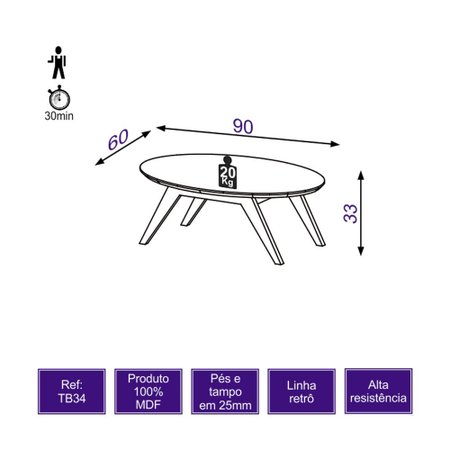 Mesa De Centro Elíptica Siena Tb34 Bel Air Móveis Copy
