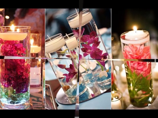 Centros De Mesa De Flores Sumergidas Con Velas Flotantes Y